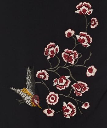 Vero Moda Women Black Embroidered Short Sleeve Round Neck Regular Fit Casual Top